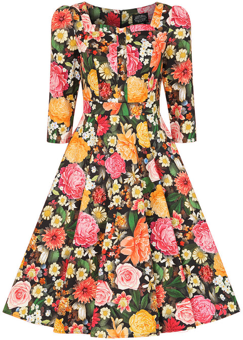 Hearts & Roses Cassidy Floral 50's Swing Dress Black