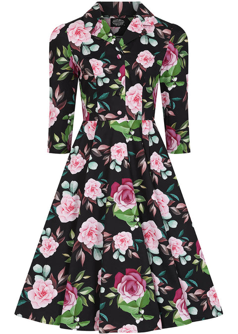 Hearts & Roses Helen Floral 50's Swing Dress Black
