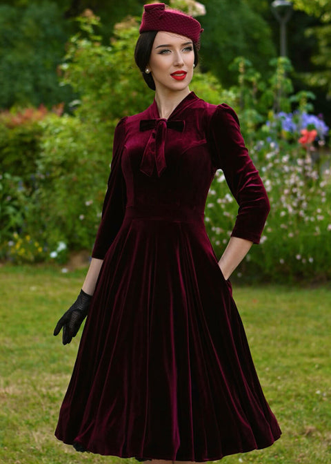 Hearts & Roses Sylvie Velvet 50's Swing Dress Burgundy